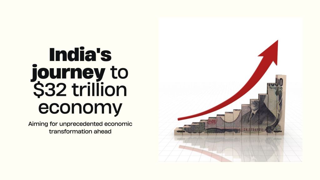 In recent years, India has emerged as a strong contender in the global economic landscape, often framed as part of the “China Plus One” strategy adopted by many multinational corporations. However, a new vision is redefining India’s role: not just as an alternative to China, but as a self-reliant powerhouse capable of charting its own destiny. By 2047, India aims to achieve an ambitious target—a $32 trillion economy, surpassing the current sizes of the United States and China. This blog explores the roadmap to achieving this vision, with a critical lens on the challenges and opportunities involved.
