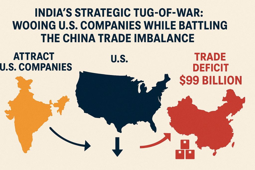 In the midst of evolving global trade dynamics, India finds itself at the intersection of opportunity and vulnerability. On one hand, it is making deliberate and calculated moves to attract U.S. companies that are exploring exits from China due to tariff escalations and geopolitical frictions. On the other hand, India is grappling with a ballooning trade deficit with China — now exceeding a staggering $99 billion — as Chinese goods continue to flood its markets.