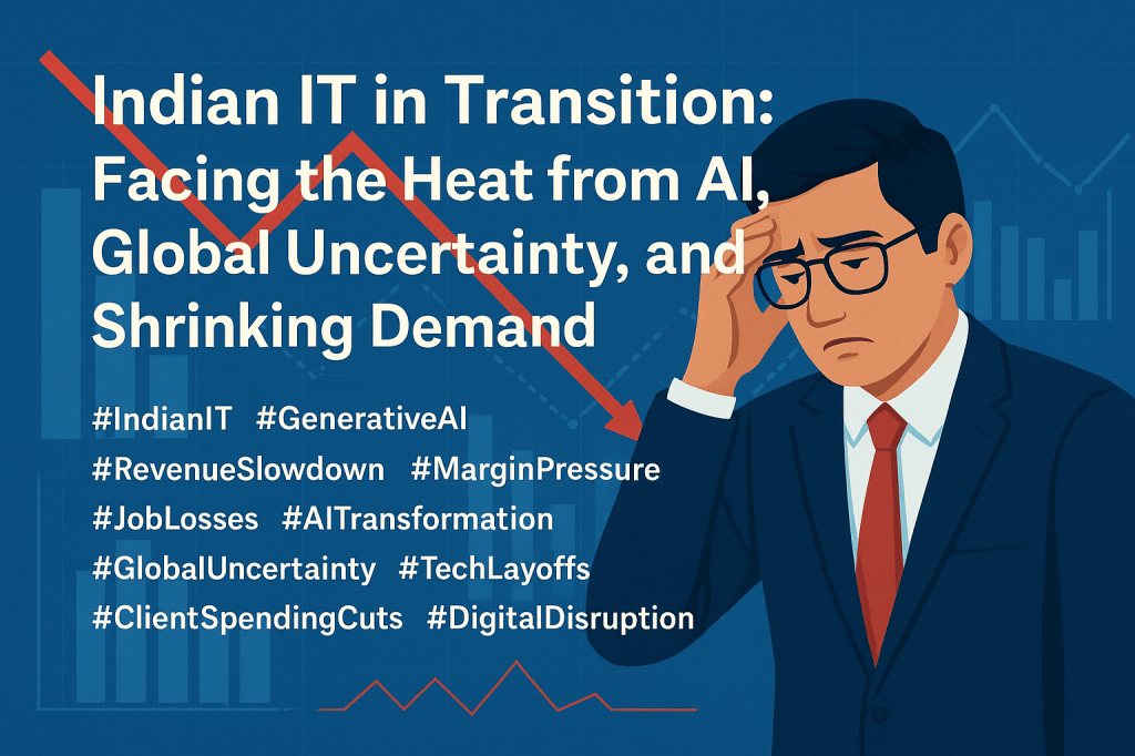 #IndianIT #GenerativeAI #RevenueSlowdown #MarginPressure #AIimpact #GlobalTradeTensions #ITJobsCrisis #Infosys #TCS #Wipro