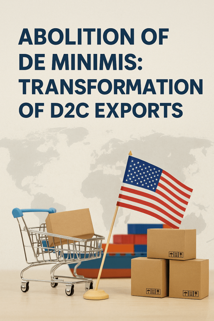 #DeMinimis #D2CExports #USATariffs #GlobalTrade #CrossBorderEcommerce #SupplyChainStrategy #ExportMarkets #TradePolicy #MarketDiversification #TariffImpact