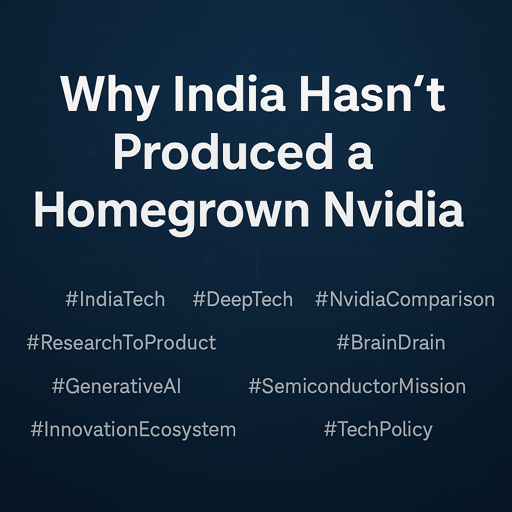 India’s technology sector has delivered remarkable success stories in IT services, SaaS exports, and digital adoption at scale. Yet, the country has not produced a homegrown deep-tech giant comparable to Nvidia — a company that not only leads in semiconductors but also shapes global innovation in AI, high-performance computing, and autonomous systems. The reasons lie in a mix of historical, structural, and policy-linked constraints, but recent trends suggest a window of opportunity is opening.