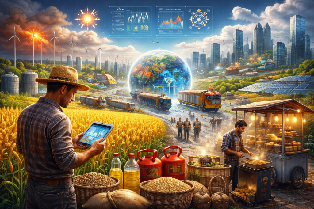 The traditional narrative of agriculture—centered on crop output, monsoon performance, and farm productivity—is undergoing a decisive transformation into a broader and far more complex food-systems story. Historically, agricultural economics was largely about land, labor, and yield, where the Green Revolution marked a turning point by stabilizing food grain production and insulating countries like India from famine-like vulnerabilities. However, in the current decade, the determinants of food security and price stability have expanded beyond the farm gate. Today, weather shocks, energy disruptions, logistics bottlenecks, and procurement inefficiencies are exerting as much influence on food outcomes as agricultural output itself. This shift signals a systemic transition where agriculture is no longer a standalone sector but part of an interconnected web involving energy markets, global trade, and urban consumption patterns.